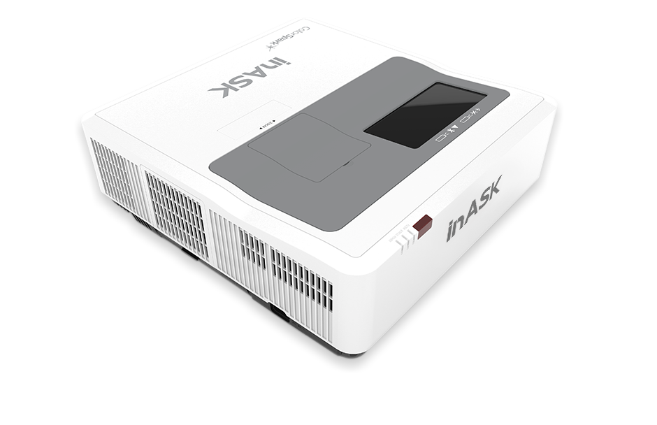 inASK采用的3LCD 方式;單片DLP方式通過時間合色方式,色彩亮度顯示時,僅為RGB的亮度輸出,色彩亮度偏低,而3LCD方式擁有高色彩亮度
