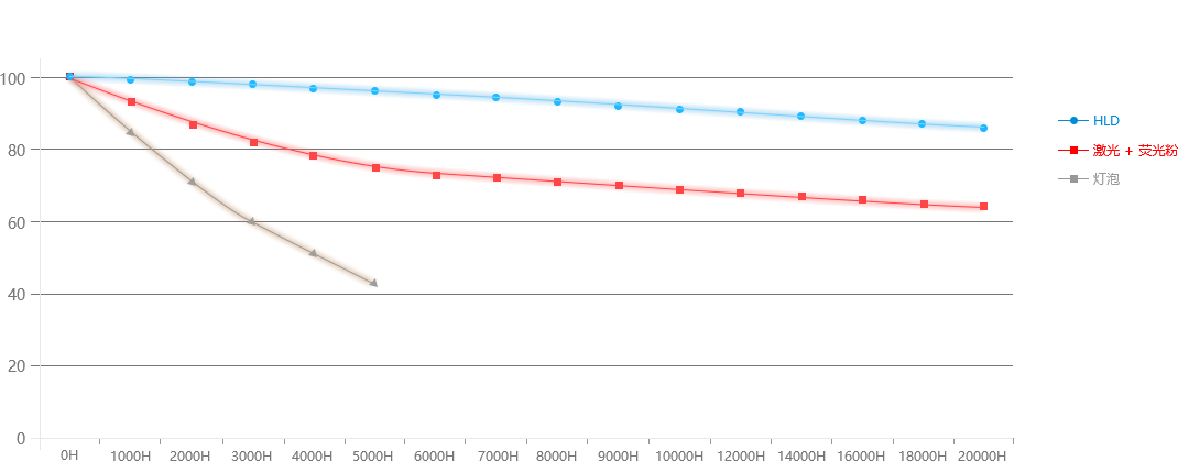 HLD亮度衰減慢,真正2萬小時使用壽命,長效耐用