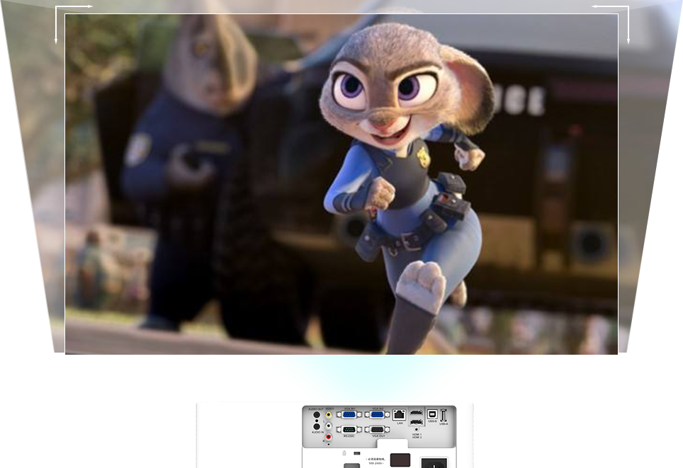 創新的梯形校正允許任意調整畫面四角,并支持四角梯形校正,桶形(曲面)校正(枕型變形校正),創造完美的畫面。會