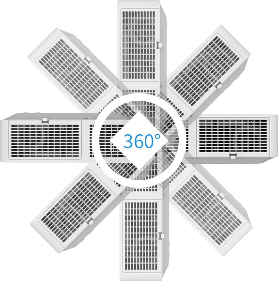 可沿垂直軸實現360°全方位投影, 包括在天花板或地板上進行投影, 從而完全打破了應用場合的局限性。