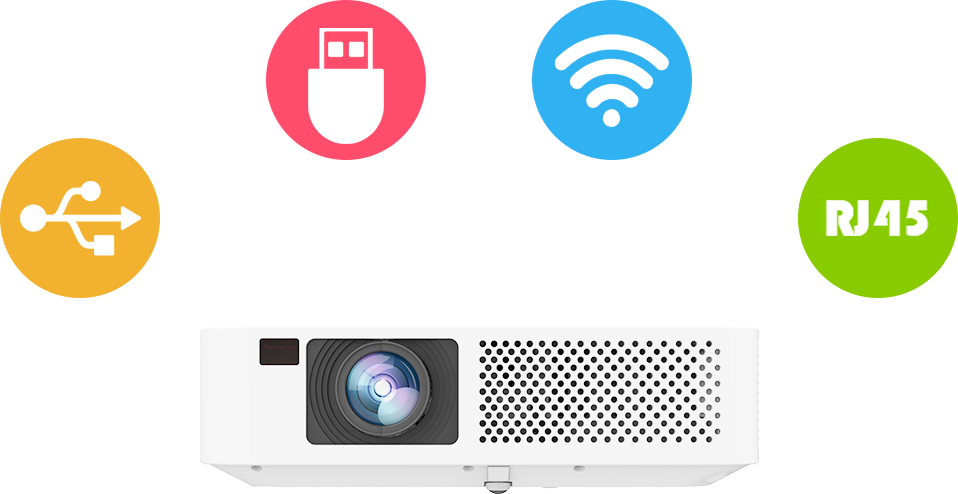 支持USB線投影、U盤直讀投影、無線投影及RJ45網絡投影