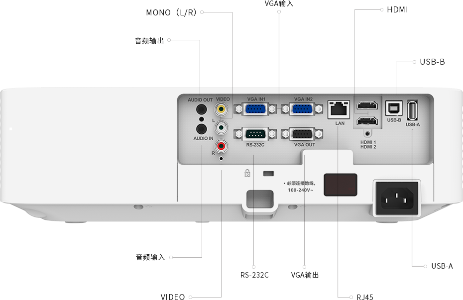 100英寸畫面,大變焦比鏡頭有助于擴大安裝范圍,可更好